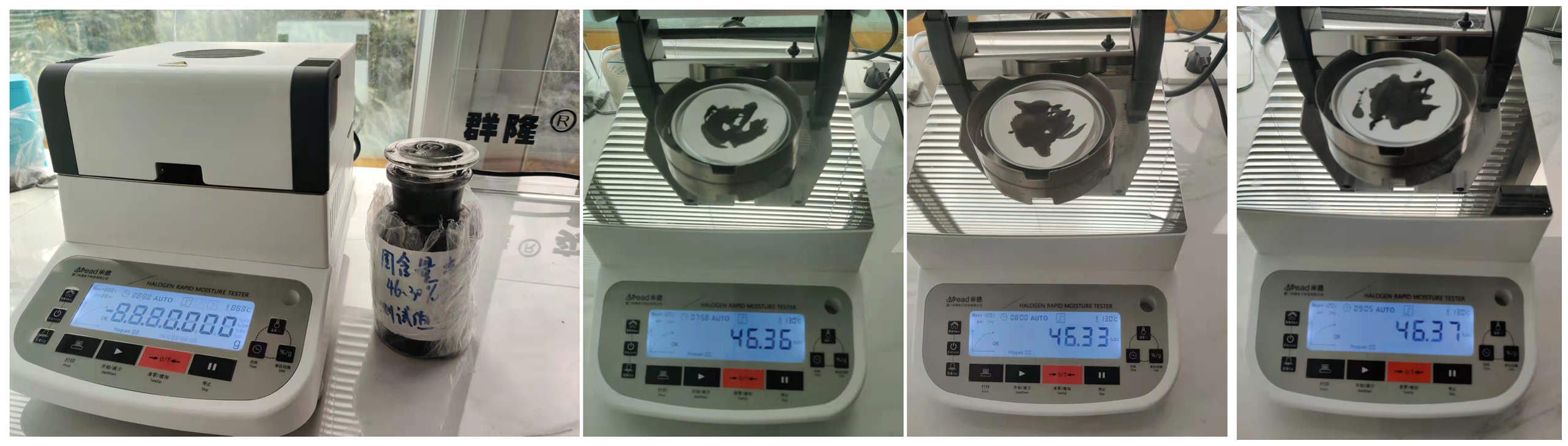 - 用實驗匙取適量漿料均勻涂在玻璃纖維紙上,設置好合適的溫度后蓋下上蓋,按下“START”鍵開始測試;蜂鳴兩聲后,儀器自動停機,測試結束,可在液晶顯示屏查看被測樣品的固含量為46.36%;