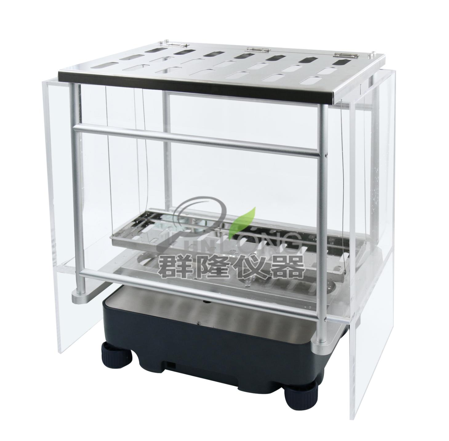 本機采用一體注塑成型測量架,一體注塑成型透明水槽,組裝方便,耐磨耐摔,防腐蝕,可清楚觀察樣品在介質中情況。