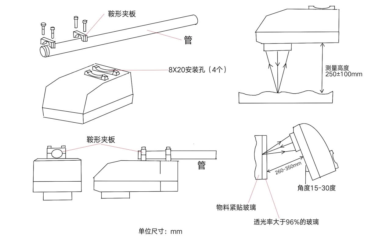 | 安裝支架 | 根據(jù)工況自行定制,安裝圓管直徑25-32mm |