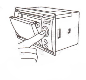 第一步:按下圓按鈕將打印機前蓋打開;把剩下的紙芯取出,如下圖: